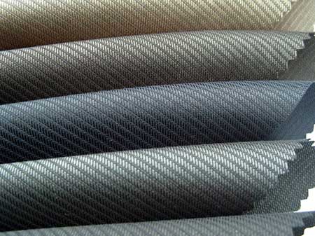 華達呢:緞背華達呢,單面華達呢。特點:斜紋約6 3 度的有一定防水性能的緊密斜紋毛織物;結實、挺括、經向強力較高,堅牢耐穿。