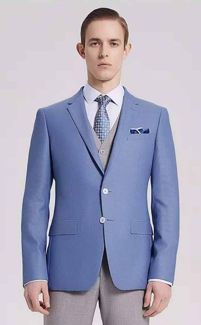 選擇面料以及顏色:在定制西服的時(shí)候可以根據(jù)自己的喜愛(ài)來(lái)選擇面料的顏色以及材質(zhì)(通常西服用羊毛料制作比較多,因?yàn)檠蛎闲再|(zhì)穩(wěn)定,是目前做西服最理想的一種面料)。如果是西服定制小白的話,選擇面料以及顏色的時(shí)候小編建議大家選擇素色的比較好,其次就是多聽(tīng)?zhēng)煾档慕ㄗh。雖然西服在款式上的變化不大,但是一些扣子的搭配、領(lǐng)帶的搭配等小細(xì)節(jié)配得好的話,會(huì)讓整套西服加分不少(如圖)。面料材質(zhì)的可以根據(jù)季節(jié)的不同、穿著場(chǎng)合的不同,還有就是自己的穿衣習(xí)慣的不同來(lái)進(jìn)行選擇。